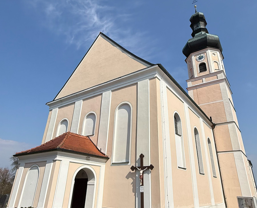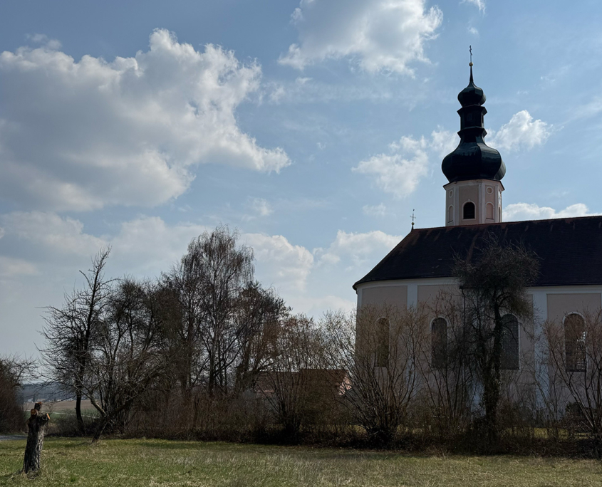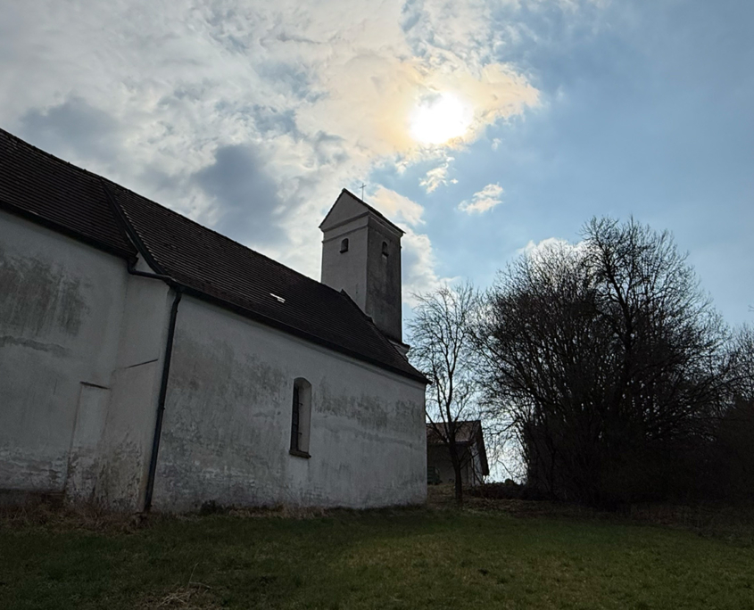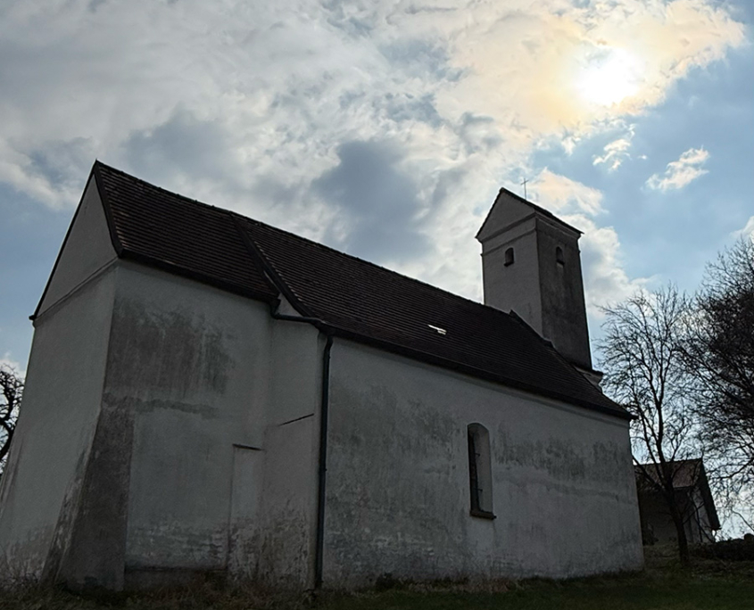 Wenn man von Wisselsdorf kommend nach Haid auf schaut, schmiegt sich das denkmalgeschützte Gotteshaus als höchster Punkt in die malerische Landschaft und das angrenzende Waldgebiet ein.